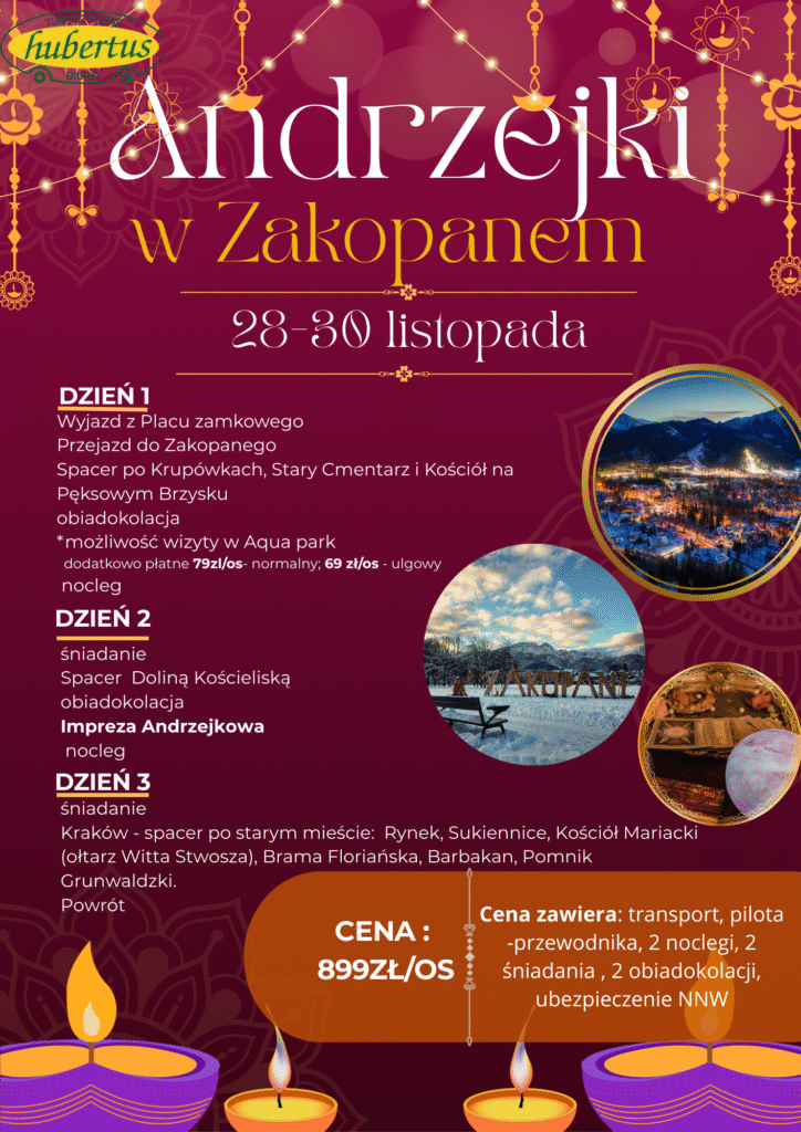 - Andrzejki w Zakopanem 28-30.11.2025Andrzejki w Zakopanem 28-30.11.2025 zapisy do 18.11.2025
