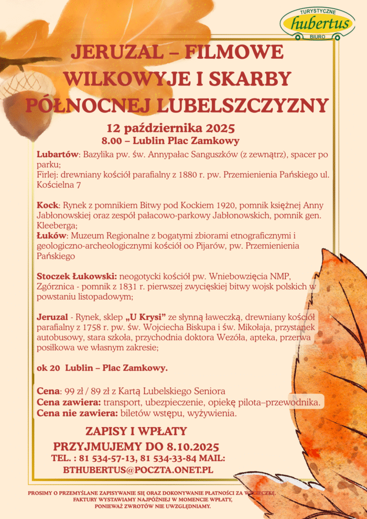 - Wycieczka na północ od Lublina do m. Jeruzal12 października 2025; Zapisy przyjmujemy do 8.10.2025