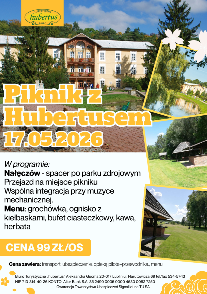 Biuro Turystyczne Hubertus od ponad 30 lat organizuje wyjątkowe wycieczki, kolonie i imprezy integracyjne dla szkół, firm oraz klientów indywidualnych. Oferujemy tanie wycieczki od 99 zł, profesjonalny wynajem autokarów oraz kompleksowe ubezpieczenia turystyczne. Z nami każda podróż to gwarancja bezpieczeństwa i niezapomnianych wspomnień!